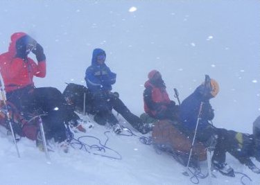 We get awakened the morning after our summit climb by our guides. There is a raging storm outside. We get geared up, climbing harness on, and grab some food. It is hard to walk 10 meters to the cook tent. I have hot water and energy bar, all I can handle right now.