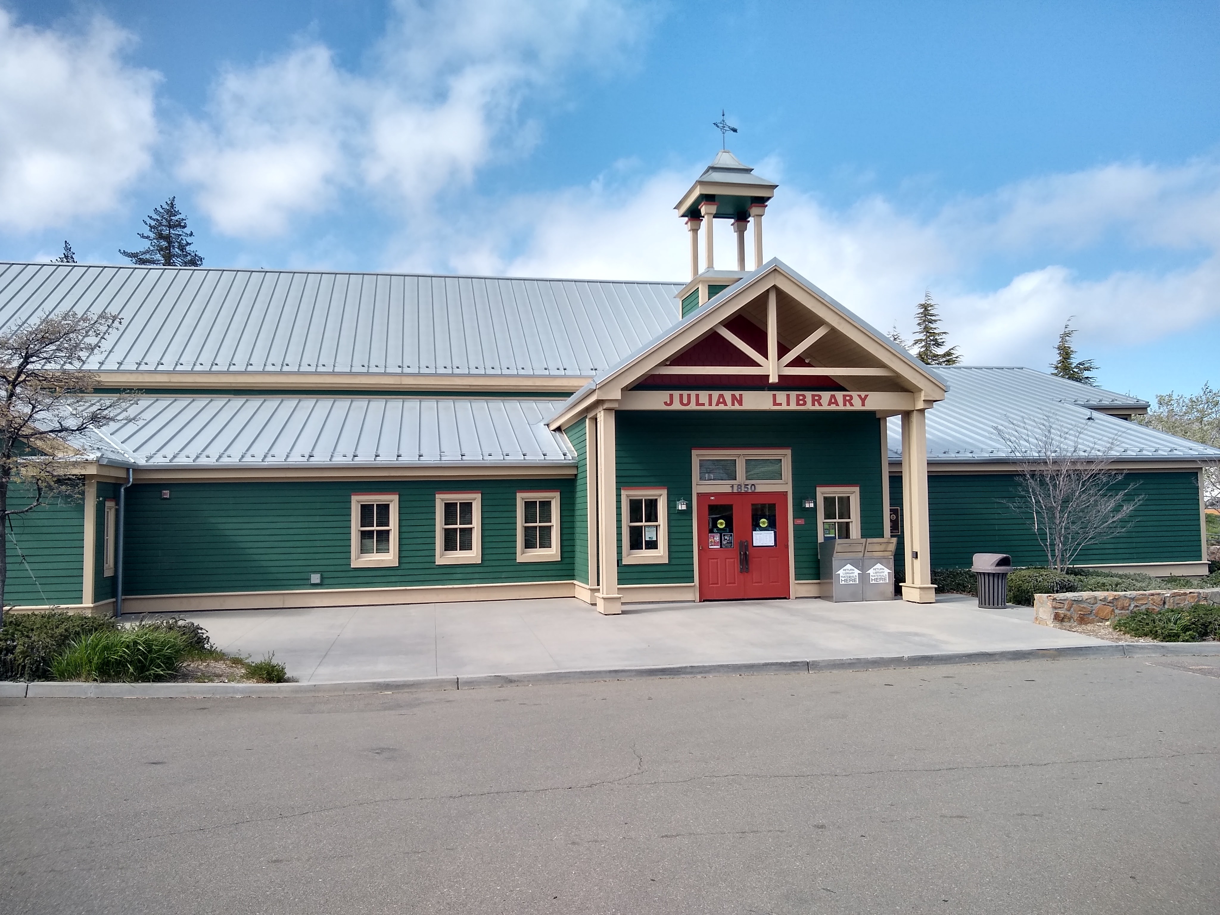 After getting to town and obtaining ginger ale, I spotted the Julian library. Those who know me can guess that I had to pay a visit; I am active with two Friends of the Library groups in Lake Forest Park, WA and Shoreline, WA. The Friends of the Julian Library had an entire room of books for sale. Yes, a few books went home with me. I had a great time chatting with Caroline about books and hiking.