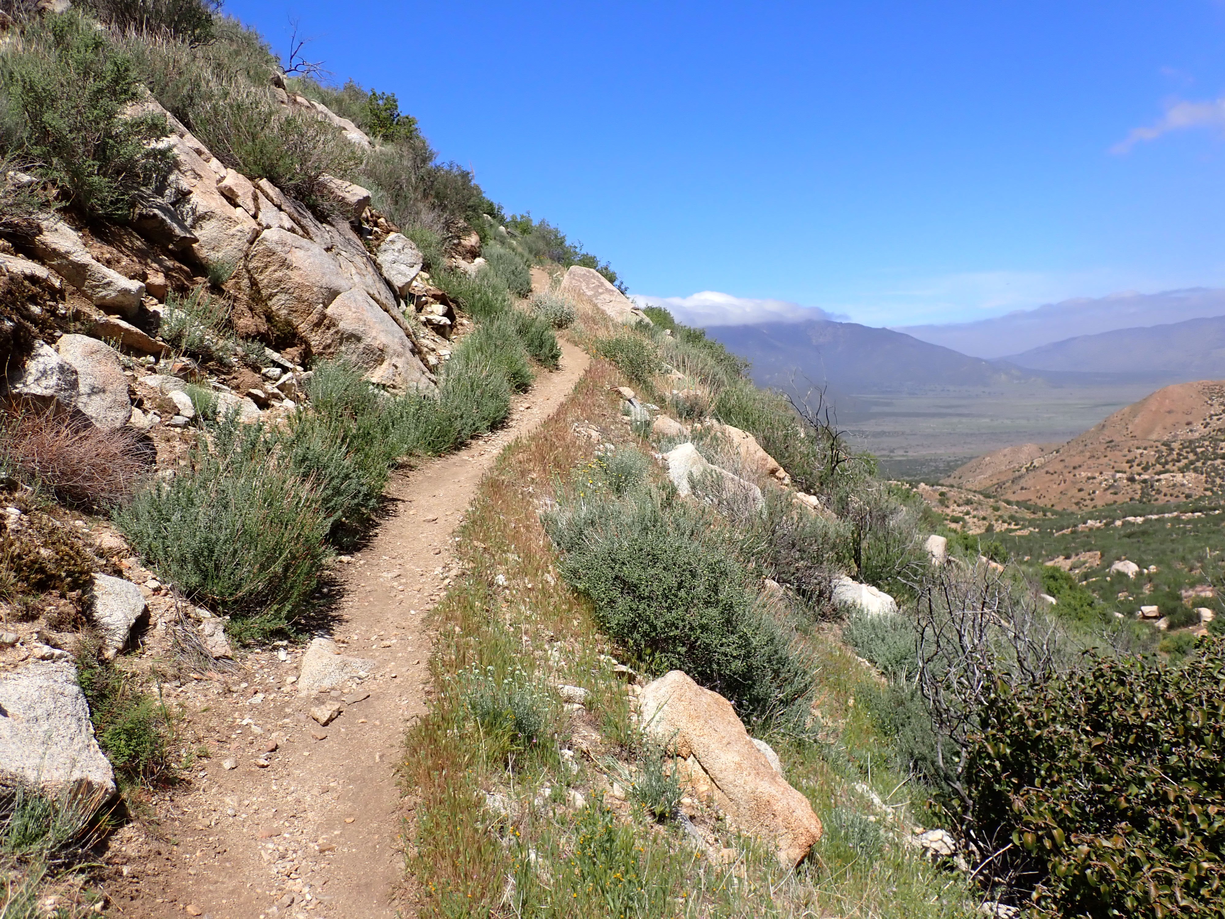 We set off from our base near Julian on a cold, clear morning. The temperature when we left was a brisk 27 degrees. We did our usual car shuttle machinations and launched from Sunrise Trailhead; bound for Scissors Crossing. As you can see, we are wearing warm clothes as we launched north.