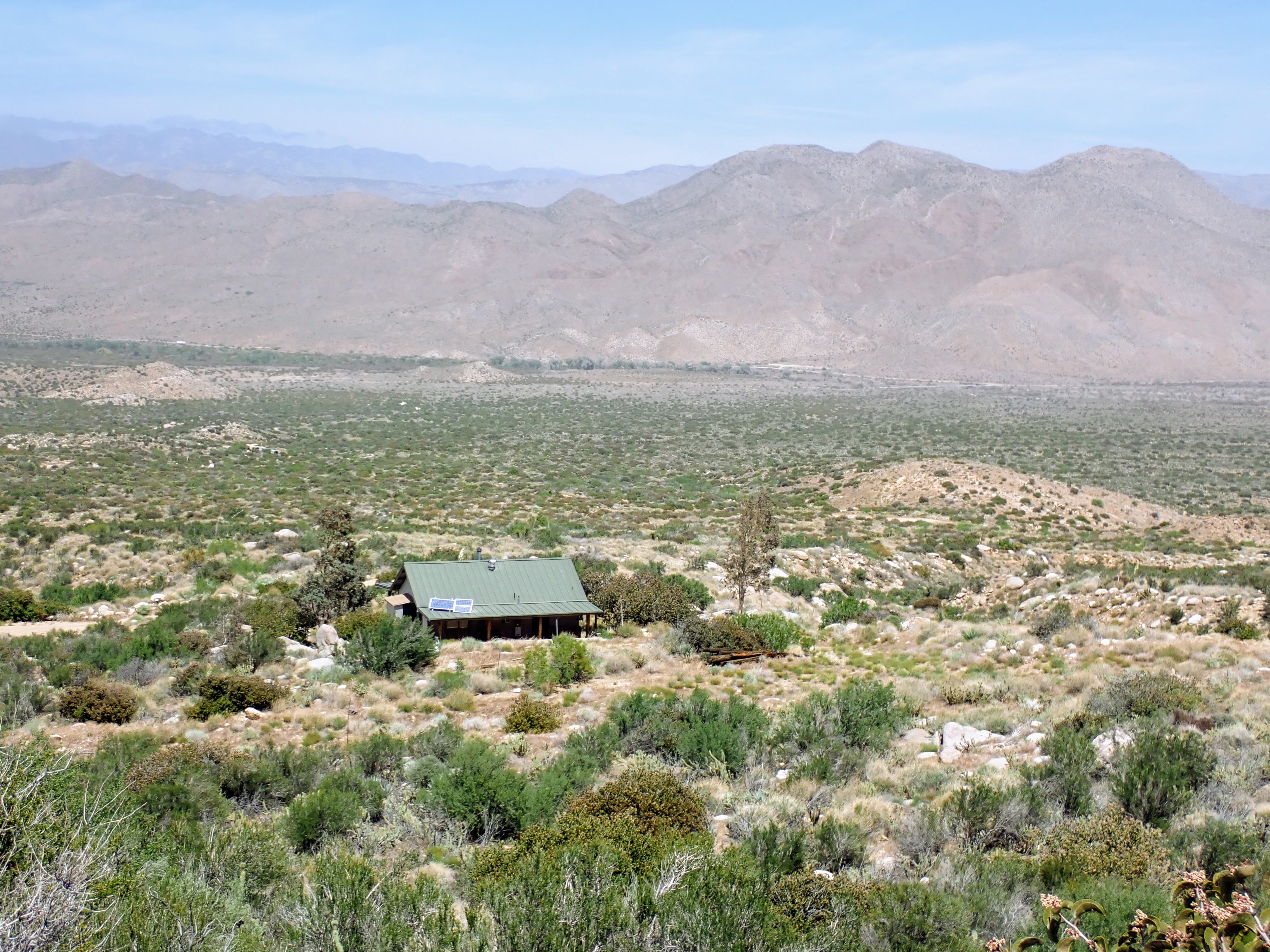 Well, back to hiking. The trail was more down than up today. As we pressed on, we crossed a few roads and encountered just a few other hikers; mainly thru hikers. We started to see signs of civilization; the middle photo below shows a homestead. The mountains beyond are the San Felipe Hills, we were to know them much better tomorrow, We were heading into the valley, our car was near the base of the hills.