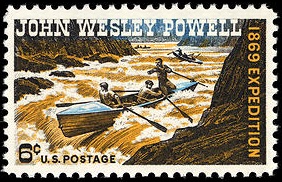 [1] “John Wesley Powell, the noted geologist who explored the Colorado River, was honored on a 6-cent stamp issued August 1, 1969. Powell led an 1869 expedition down the Green and Colorado Rivers, a 1,000-mile, four-months’ journey.” Image and text from US Bureau of Engraving and Printing via Wikipedia https://en.wikipedia.org/wiki/File:John_Wesley_Powell_1969.1.jpg accessed 25 July 2022