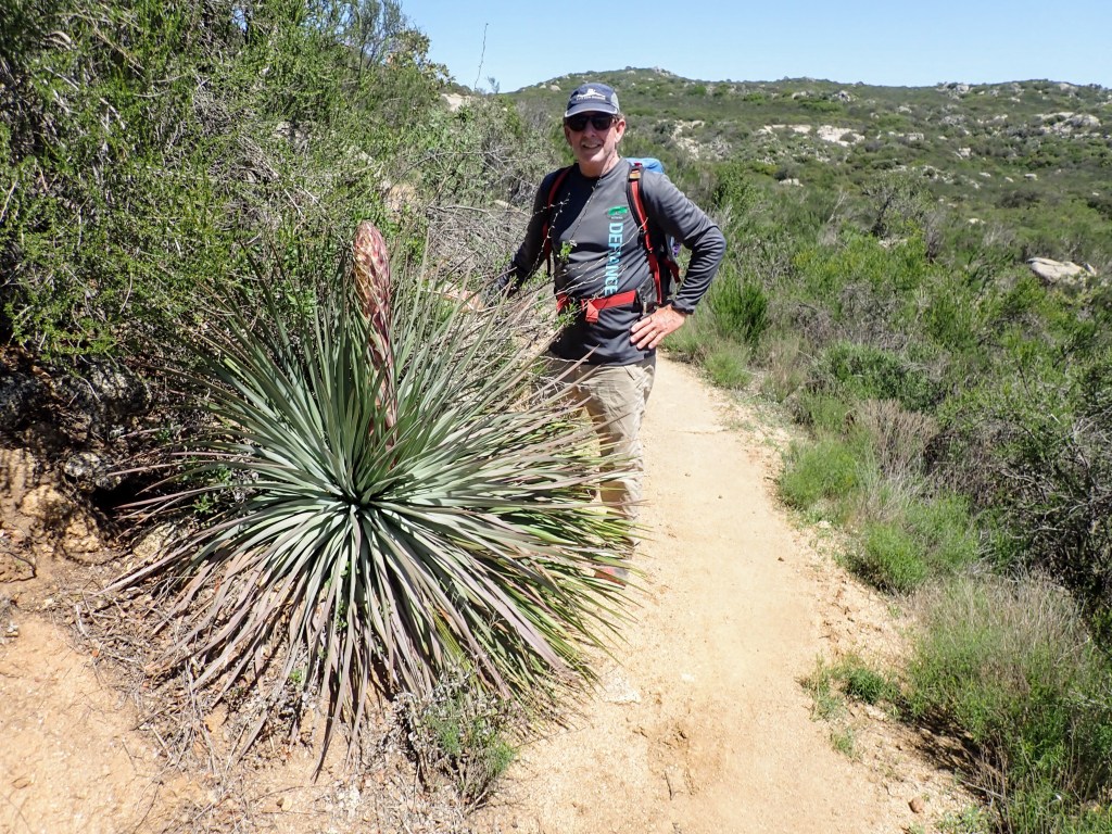 As we made our way north, we entered Anza-Borrego Desert State Park. I would describe the terrain we hiked through as chaparral rather than desert. You can get a look at this via my rather poor attempt at a selfie. Another comment, I am well protected from the sun. I tried out a Black Diamond Sun Hoodie on this trip, it seemed to live up to its advertised UPF 50 protection. I’m of Irish ancestry I can (and have) got sunburn in the shade. I have SPF50 sunscreen along with SPF 30 lip balm and my trusty RayBan shades. I also wear OR sun gloves. All this worked well for me during the six days of hiking.